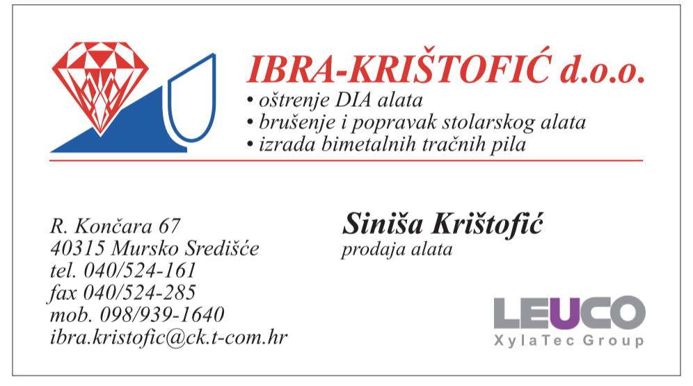 IBRA-KRIŠTOFIĆ d.o.o. ( Izrada Brušenje Reznih Alata ) osnovana je 2016 godine. Osnovna djelatnost tvrtke je brušenje i izrada reznih alata. Tvrtka se također bavi popravcima i prodajom reznih alata za drvnu,metalnu i pvc industriju.